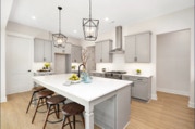 Lovely, warm & inviting modern farmhouse done in a classic light gray. Open single-level home featuring 4 Bedrooms, and a flex office. Featuring front & rear covered porches. An oversized 2-Car Garage provides for dedicated storage space. White perimeter kitchen cabinets with contrasting island, quartz countertops. Cozy & comfortable fireplace in great room. LVP flooring throughout with tile floors in all baths & laundry. Modern Farmhouse-style interior trim with solid core doors.